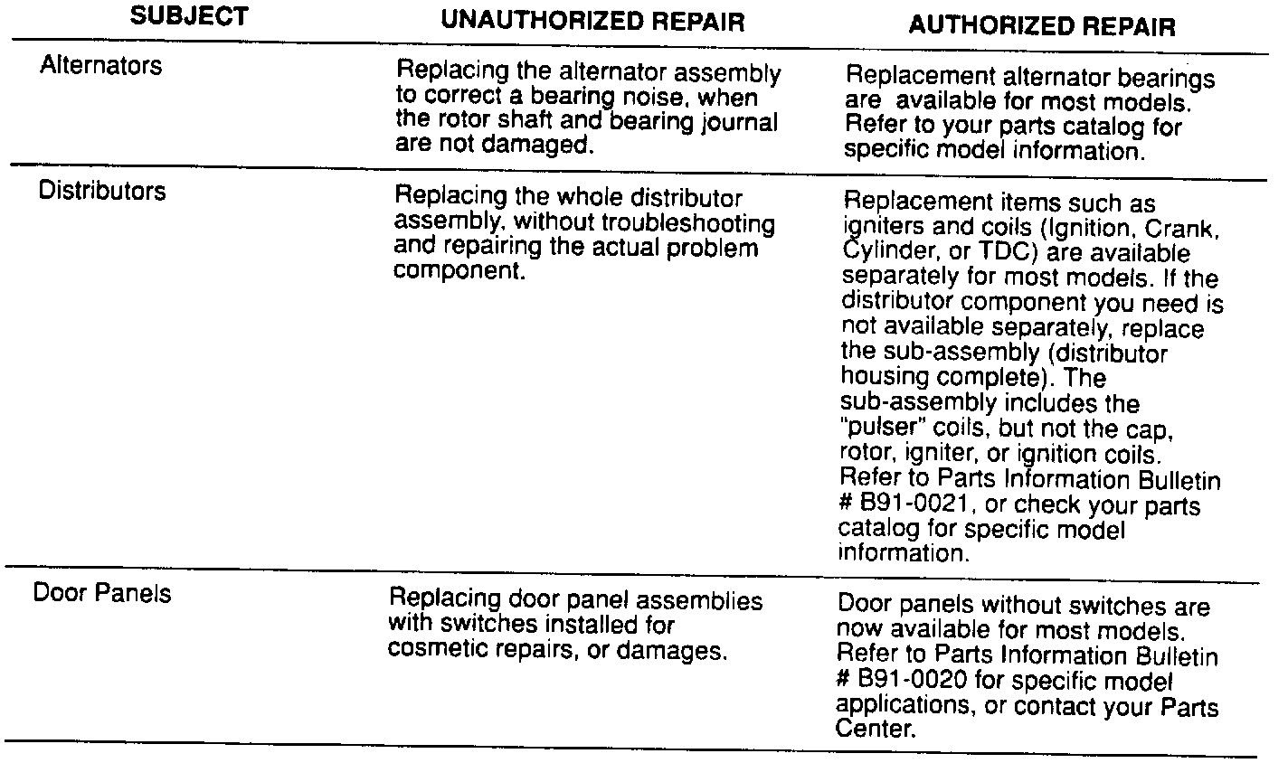 The proper warranty repair procedure is to replace individual component parts, rather than complete assemblies. Refer to your Service Operations Manual under section 9, paragraph 9.3. The assemblies will no longer be accepted on warranty claims.