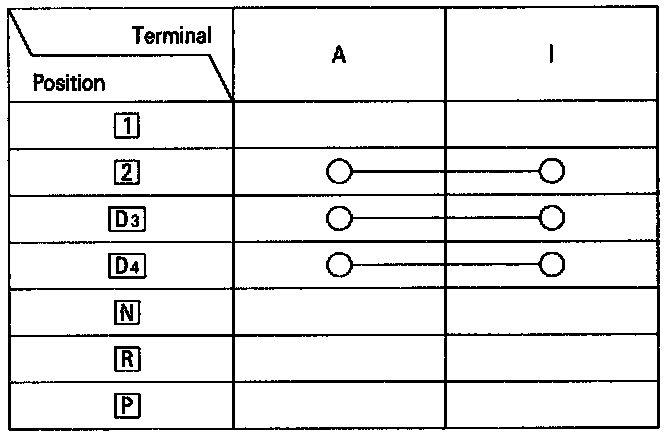 * Move the lever back and forth at each position without touching the button, and check for continuity within the range of free play of the shift lever.