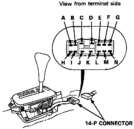 1. Remove the center console, then disconnect the 14-P connector from the switch.