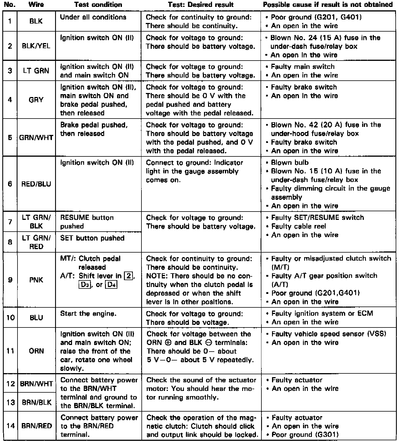 CRUISE CONTROL UNIT / INPUT TESTCAUTION: