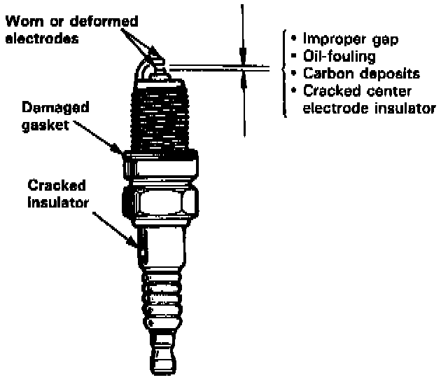 SPARK PLUG / INSPECTION1. Inspect the electrodes and ceramic insulator for: