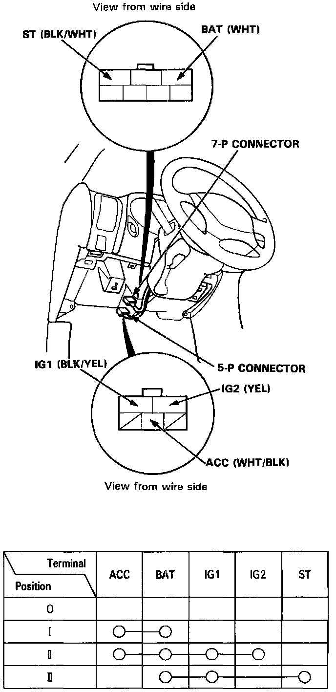 2. Disconnect the 5-P connector from the under-dash fuse/relay box and the 7-P connector from the main wire harness.
