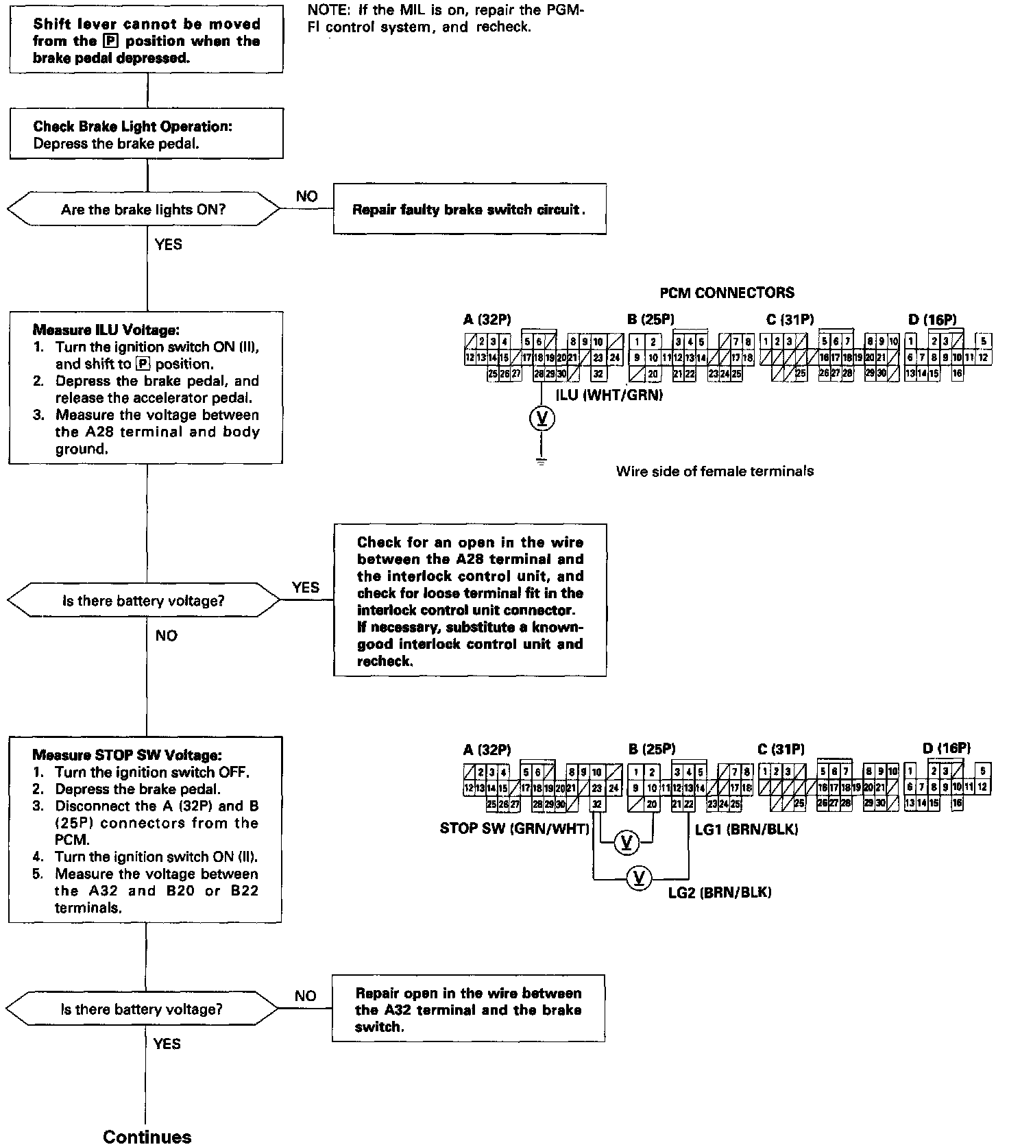 Interlock System - Shift Lock System Circuit Troubleshooting