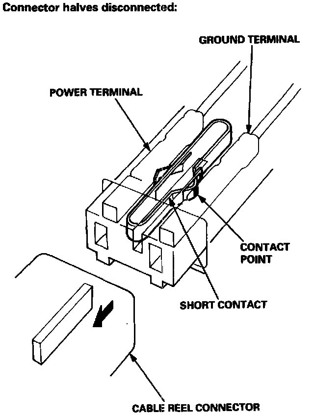 The driver's and front passenger's airbag have a spring-loaded lock connector with a built-in short contact. When this connector is disconnected, the power terminal and the ground terminal in the airbag connector are automatically shorted.