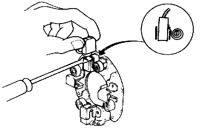 1. Pry back each brush spring with a screwdriver, then position the brush about halfway out of its holder, and release the spring to hold it there.