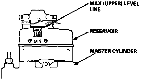 1. Make sure the brake fluid level in the reservoir is at the MAX (upper) level line.