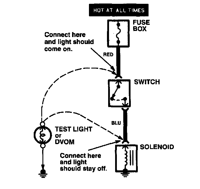 2. Connect the other lead of the test light or DVOM to the point you want to check.