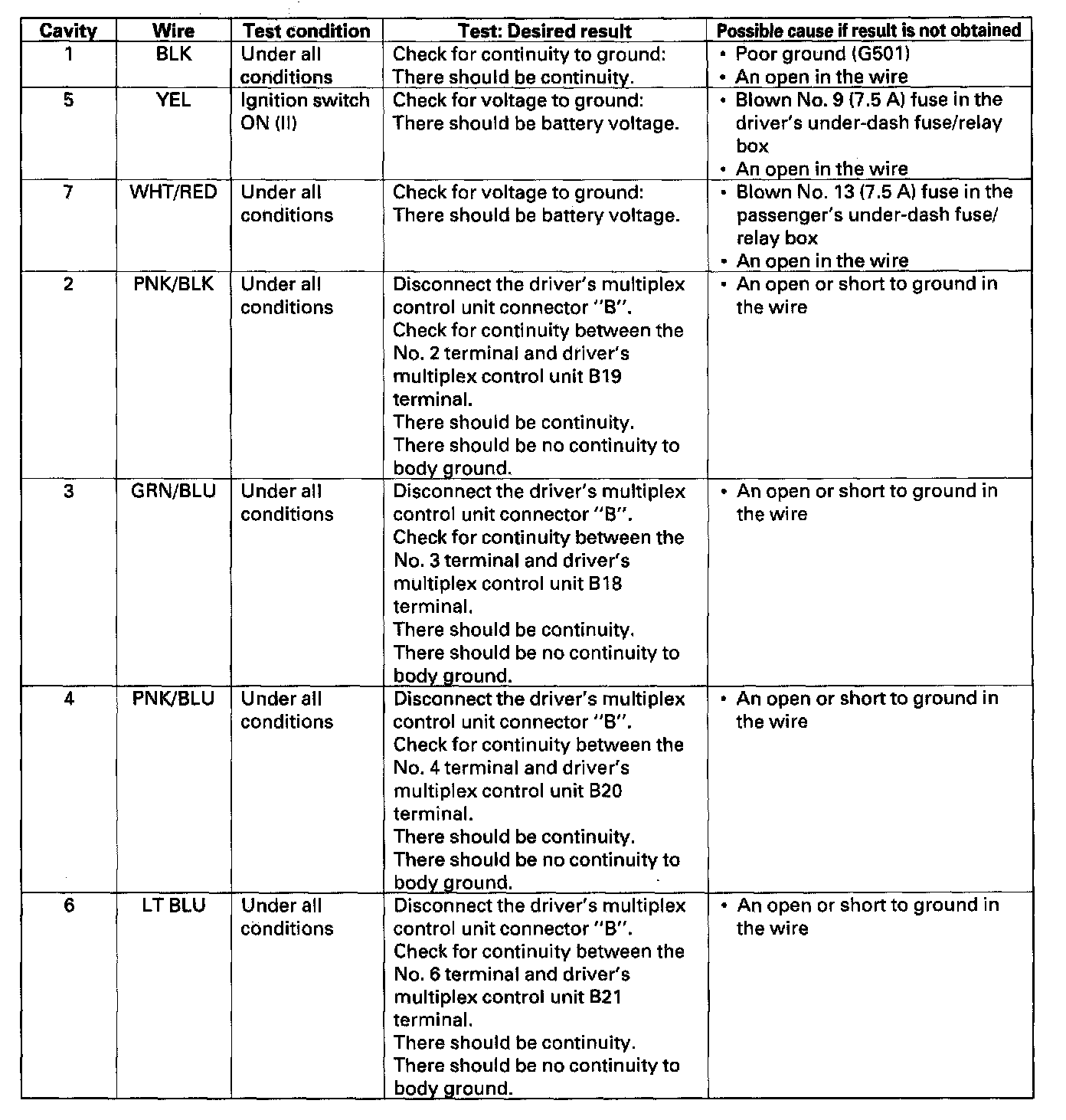 - If all the input tests prove OK, replace the keyless receiver unit.