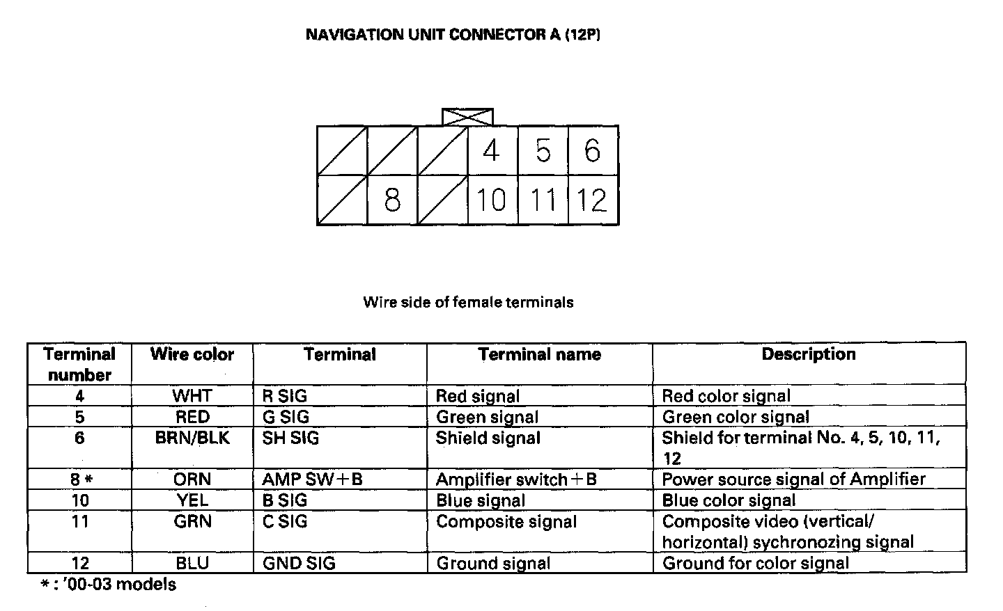 Navigation Unit Inputs And Outputs For Connector A (12P):