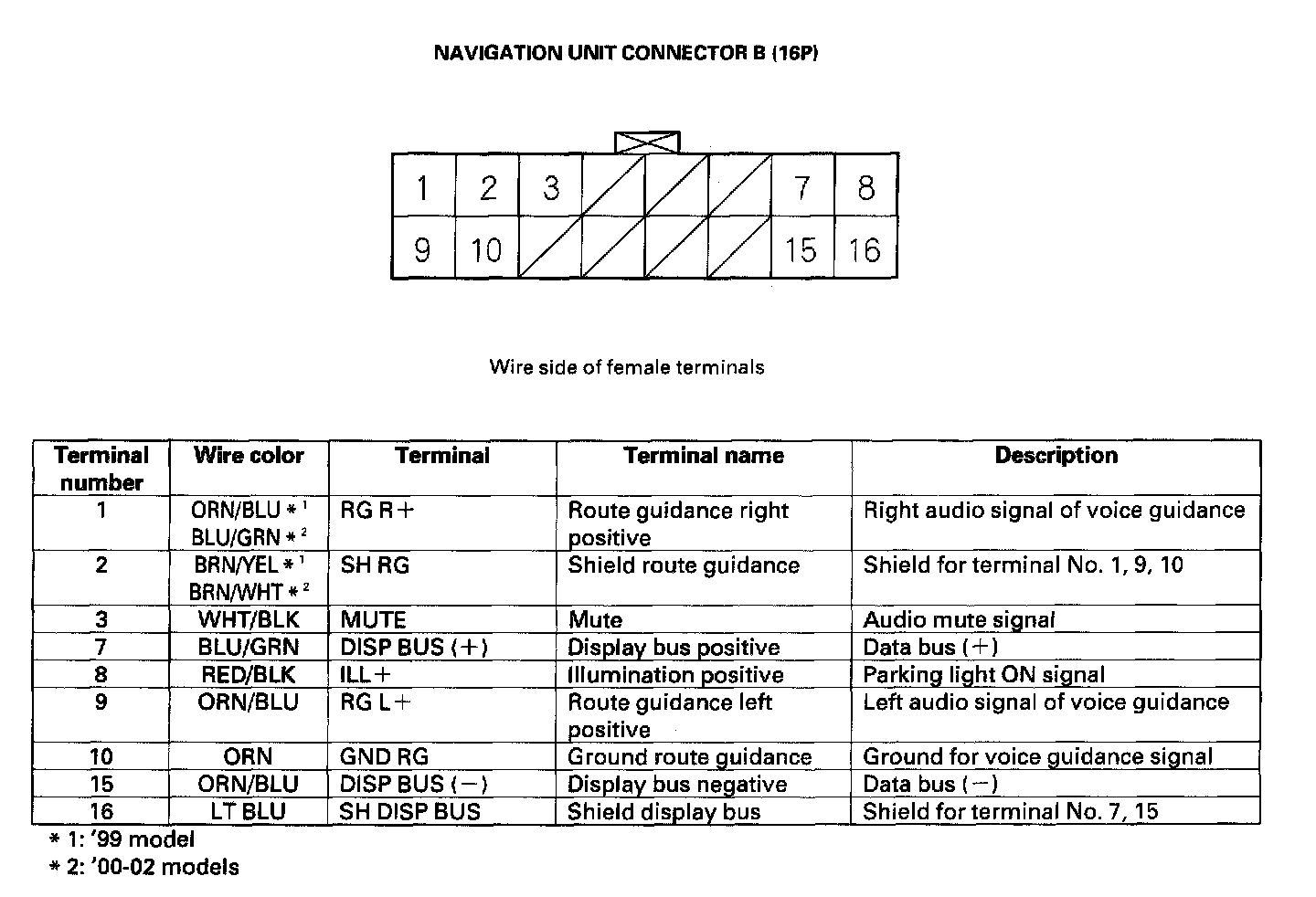 Navigation Unit Inputs And Outputs For Connector B (16P):