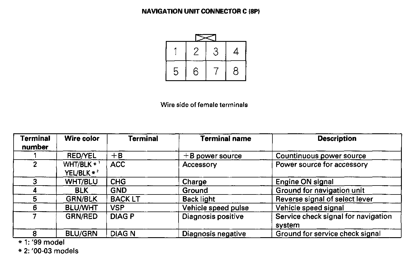 Navigation Unit Inputs And Outputs For Connector C (8P):