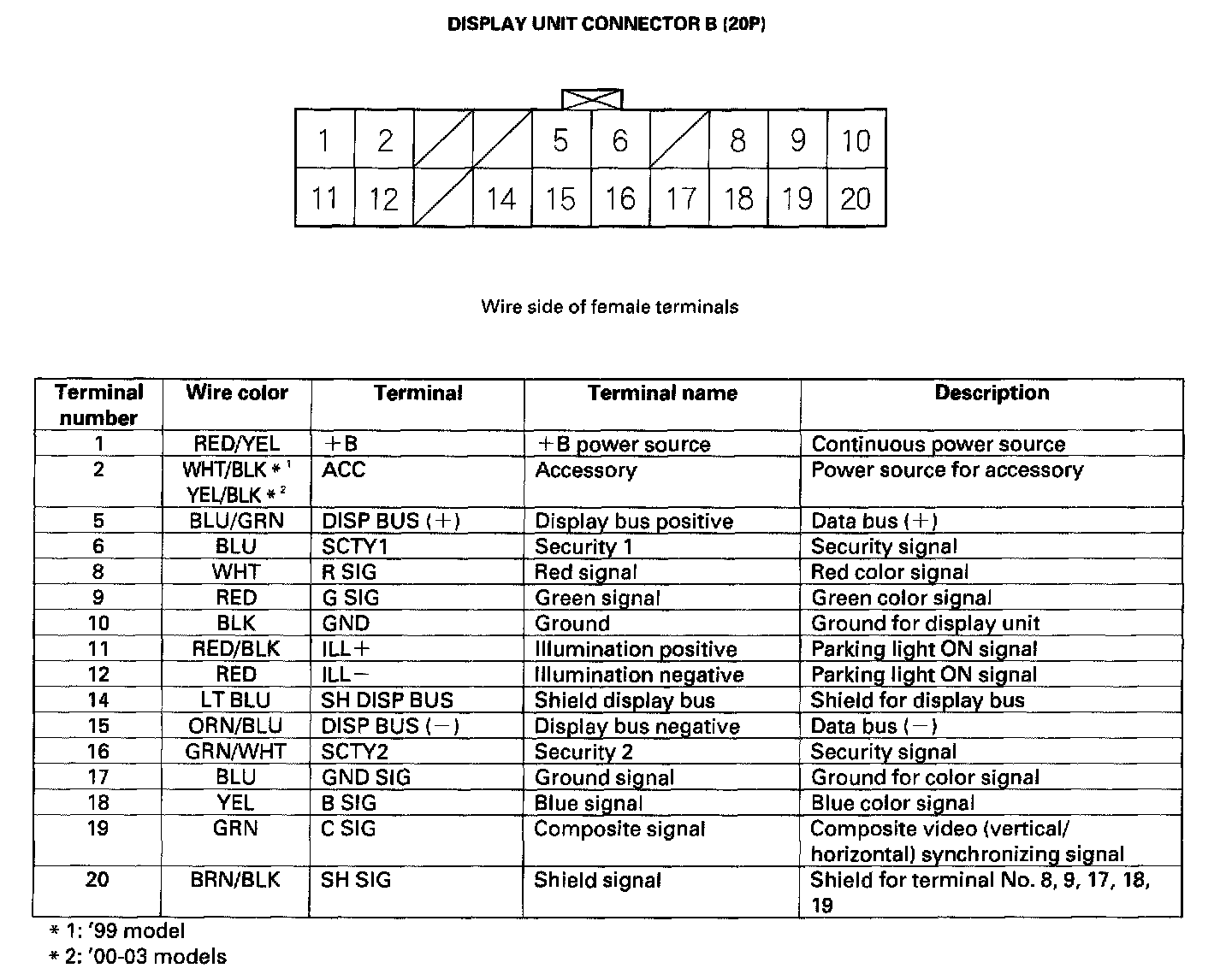 Navigation Unit Inputs And Outputs For Connector B (20P):