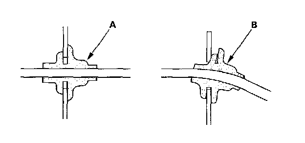 - Seat grommets in their grooves properly (A). Do not leave grommets distorted (B).