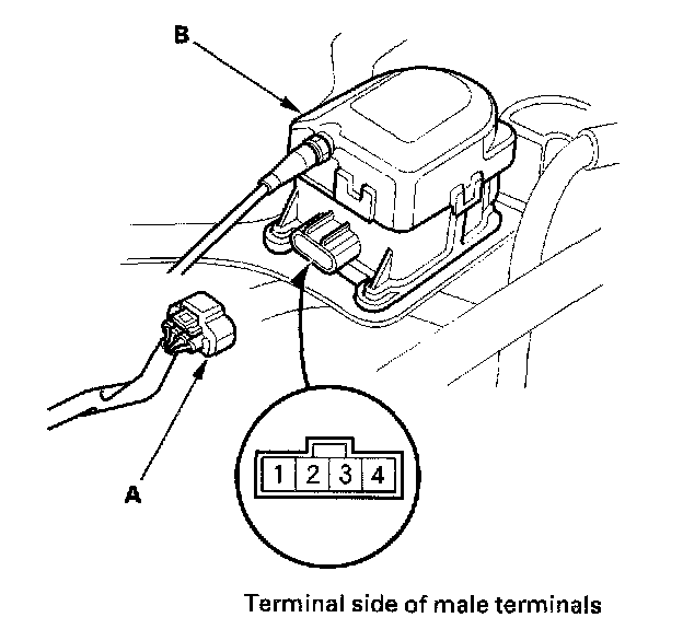 1. Disconnect the 4P connector (A) from the actuator (B).