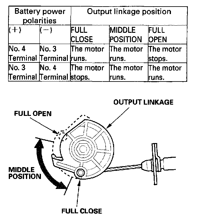 6. Check the operation of the actuator motor in each output linkage position according to the table. You should be able to hear the motor.