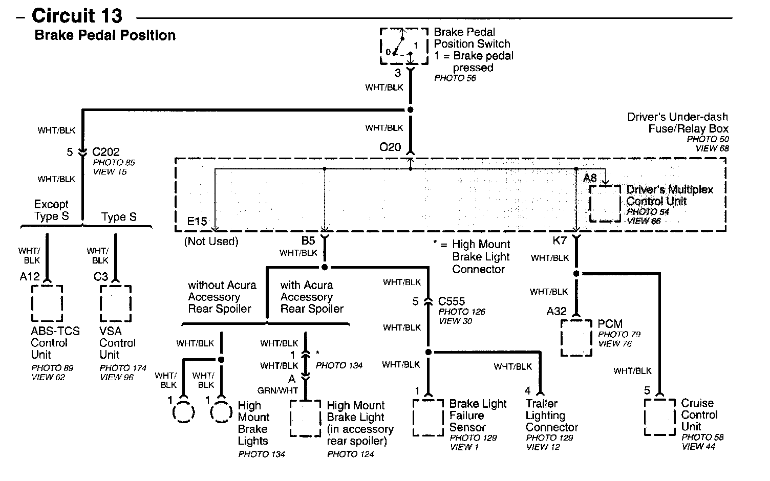 Circuit 13 Brake Pedal Position Image 15-3a: