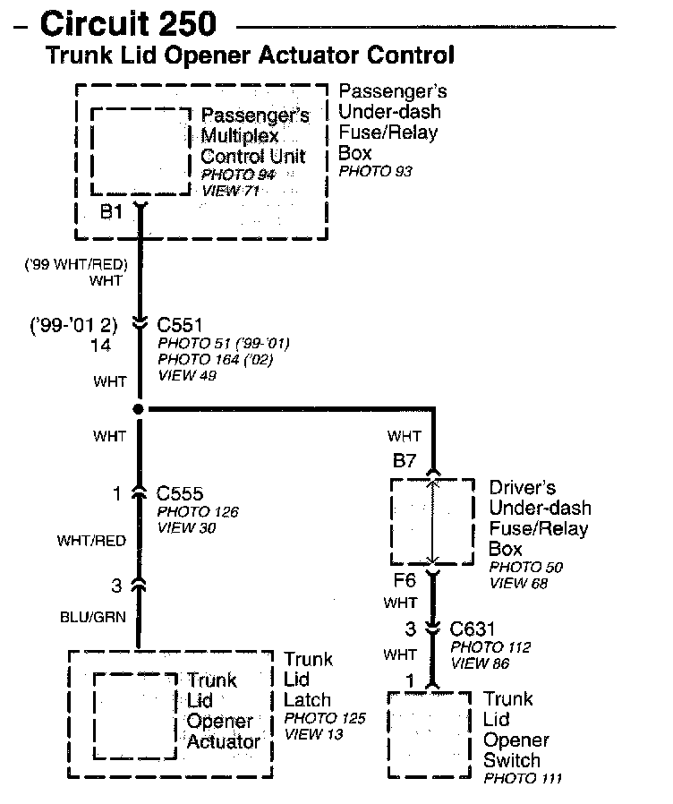 Circuit 250 Trunk Lid Opener Actuator Control Image 15-6c: