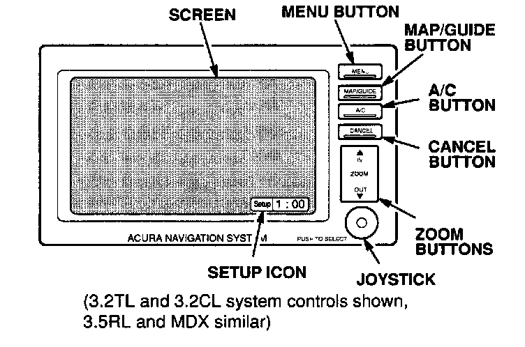 A/C (3.2TL and 3.2CL) - Press this button to display a menu of manual controls for the climate control system.