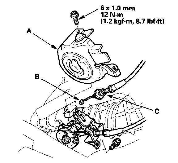 Cruise Control Actuator/Cable Replacement1. K20A3 engine: Remove the throttle cover (A), fully open the cruise control link by hand, then remove the cruise control cable (B) from link. Loosen the locknut (C), and remove the cable from the bracket.