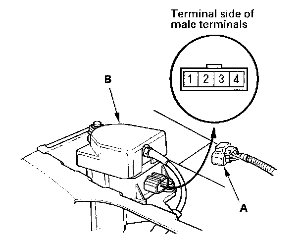 Cruise Control Actuator Test1. Disconnect the 4P connector (A) from the cruise control actuator (B).