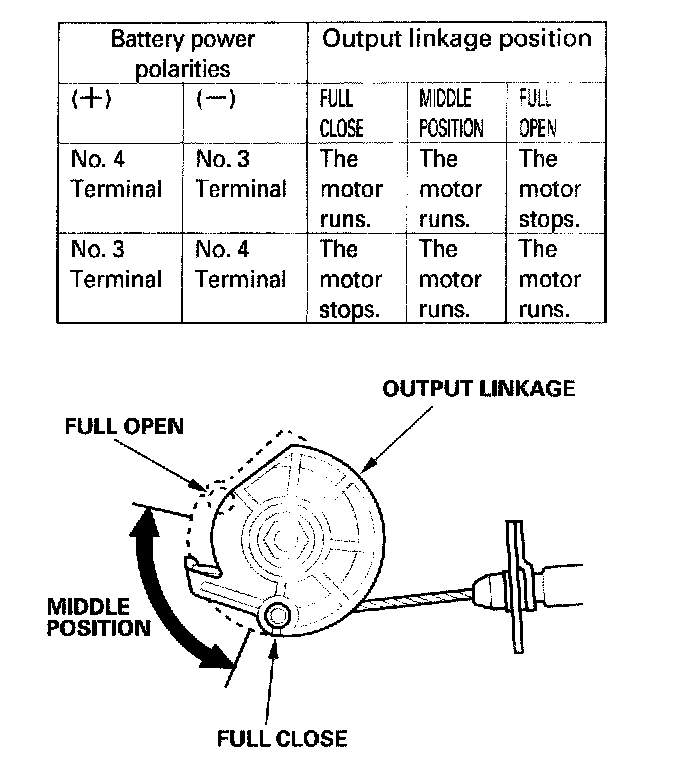 6. Check the operation of the actuator motor in each output linkage position according to the table You should be able to hear the motor.