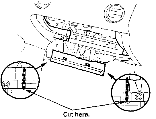 2. Cut the plastic cross brace in the glove box opening with diagonal cutters in the area shown. Remove and discard the plastic cross brace.