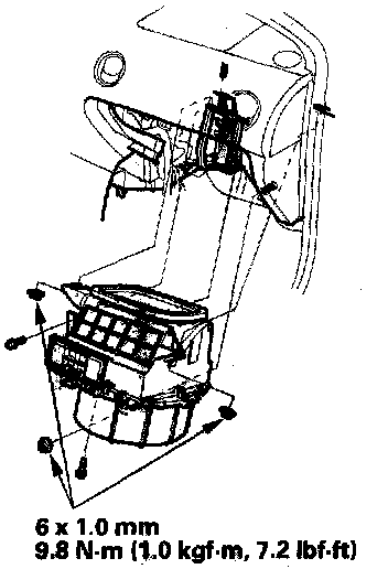 Blower Unit Removal and Installation1. Remove the passenger's dashboard lower cover, the right kick panel, and the glove box.