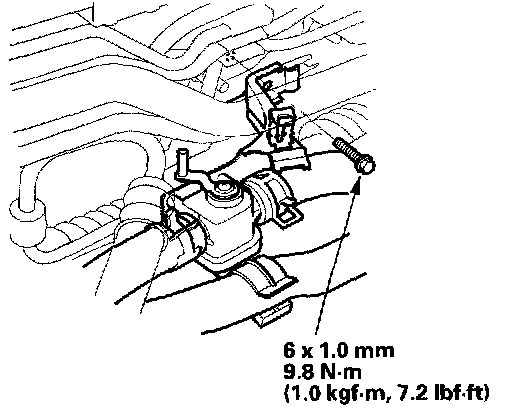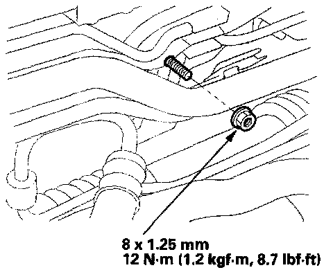 11. Remove the mounting nut from the heater unit. Take care not to damage or bend the fuel lines and the brake lines, etc.