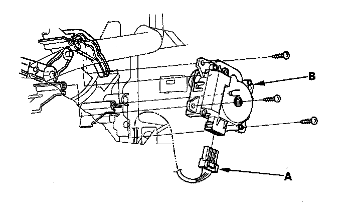 3. Disconnect the 7P connector (A) from the mode control motor (B). Remove the self-tapping screws and the mode control motor from the heater unit.