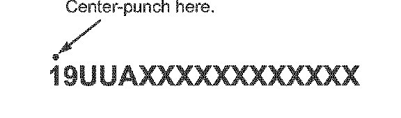5. Center-punch a completion mark above the first character of the engine compartment VIN.