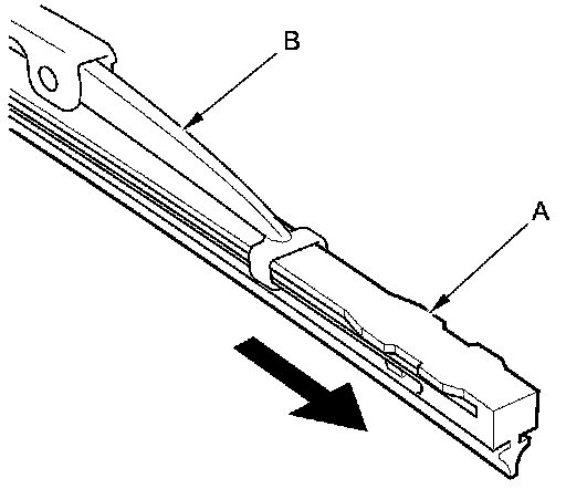 3. Slide the blade (A) out from the wiper blade holder (B).