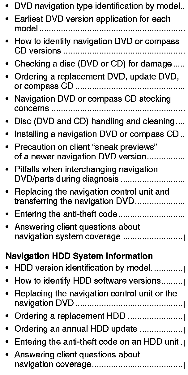^ Under DVD NAVIGATION TYPE IDENTIFICATION BY MODEL, the Current Update DVD Version was changed for most vehicles, and 2012 model information was added.