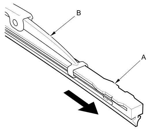 3. Slide the blade (A) out from the wiper blade holder (B).