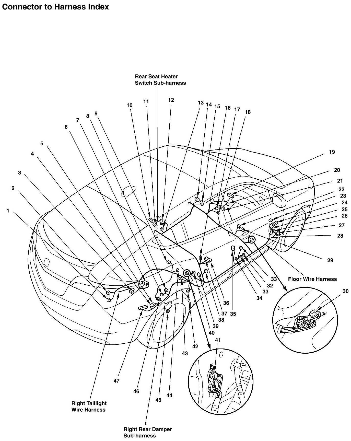 Floor Wire Harness (Right Branch), Rear Seat Heater Switch Sub-harness, Right Rear Damper Sub-harness, and Right Taillight Wire Harness