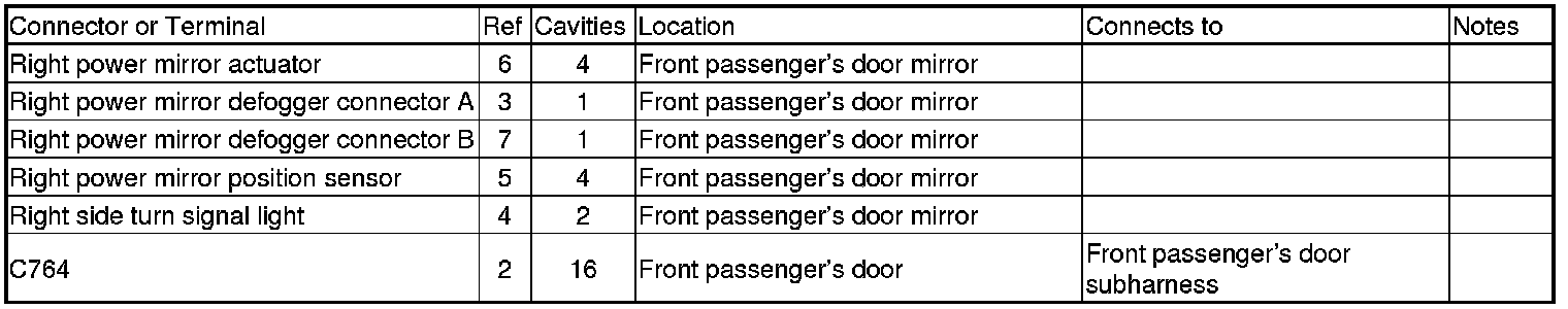 Front Passenger's Door Power Mirror Wire Harness