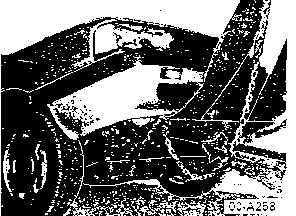- tow vehicle with 150 mm (6 in.) ground clearance under front tires, bumper positioned against slings
