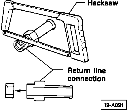 ^ using hacksaw, cut off threads of replacement return line connection in middle (as shown)