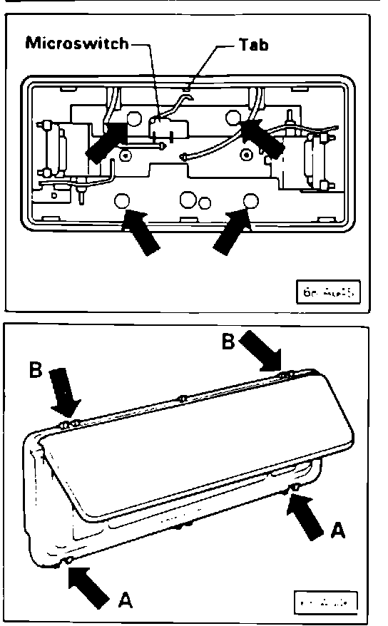 - Reinstall mirror/lens assembly into light assembly, first at points B, then carefully apply pressure at points A and push fully into light assembly.