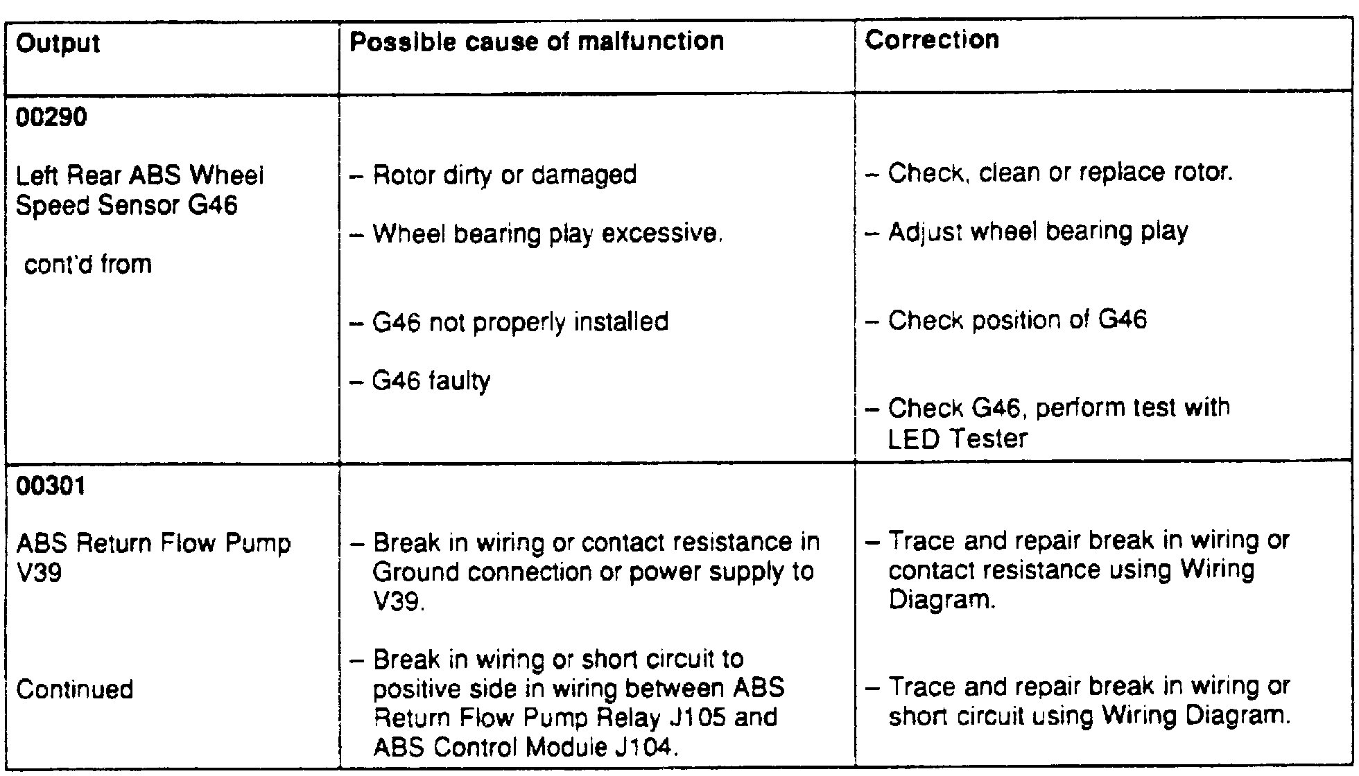Fig.28 Code 00290 & 00301: Left Rear ABS Wheel Speed Sensor & ABS Return Flow Pump.: