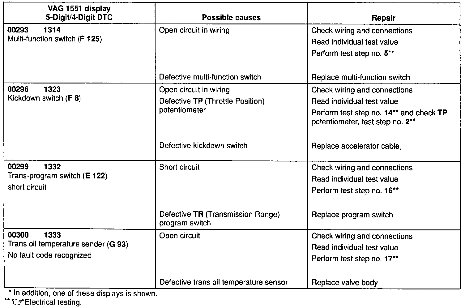 Trouble Code Chart: