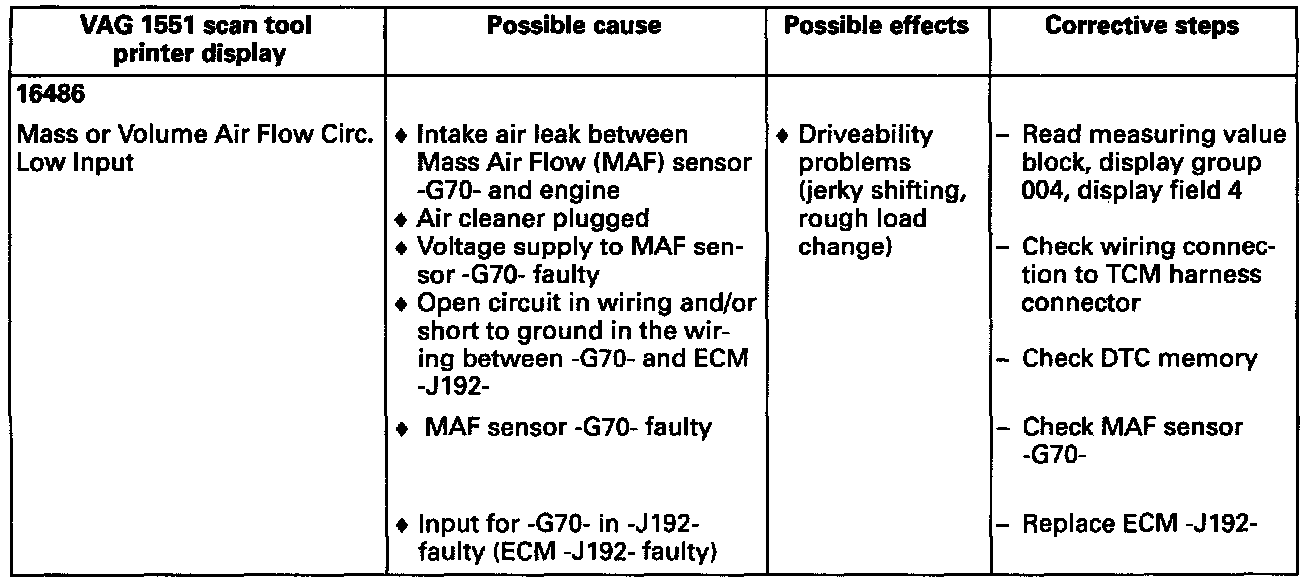 The DTC "16486" is stored as soon as the signal voltage falls below