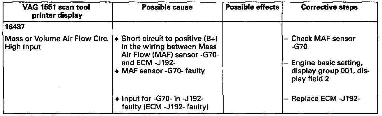 The DTC "16487" is stored as soon as the signal voltage falls below