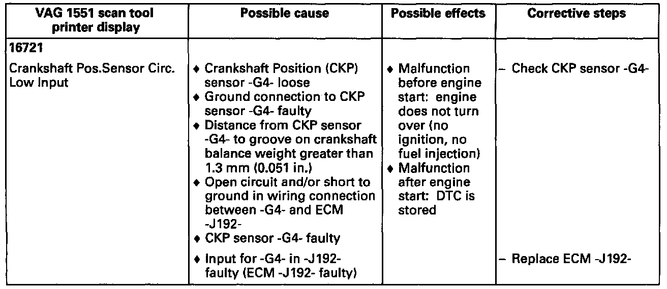 The DTC "16721" is stored when crankshaft position sensor signal is not recognized for longer than