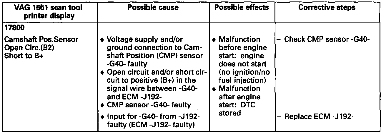 ^ DTC "17800" is stored as soon as the CMP sensor signal is continuously "high" with an engine speed between 50 RPM and 2000 RPM and with more than 15 crankshaft position signals recognized.