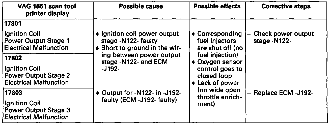 The ignition coil power output stage is not an integral part of ECM -J192-, it is a separate component fastened to the bulkhead.
