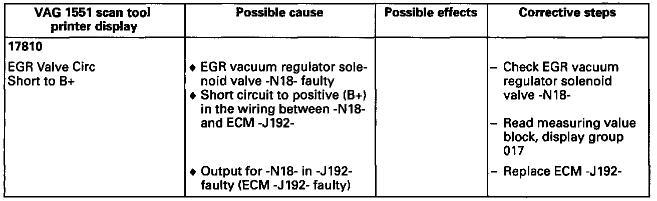 ^ DTC "17808" is stored as soon after engine starts as the ECM output for the EGR valve is "high" for longer than one second at an engine speed between 1000 RPM and 3500 RPM, an engine load between 33% and 66% and an EGR valve duty cycle greater than 30%