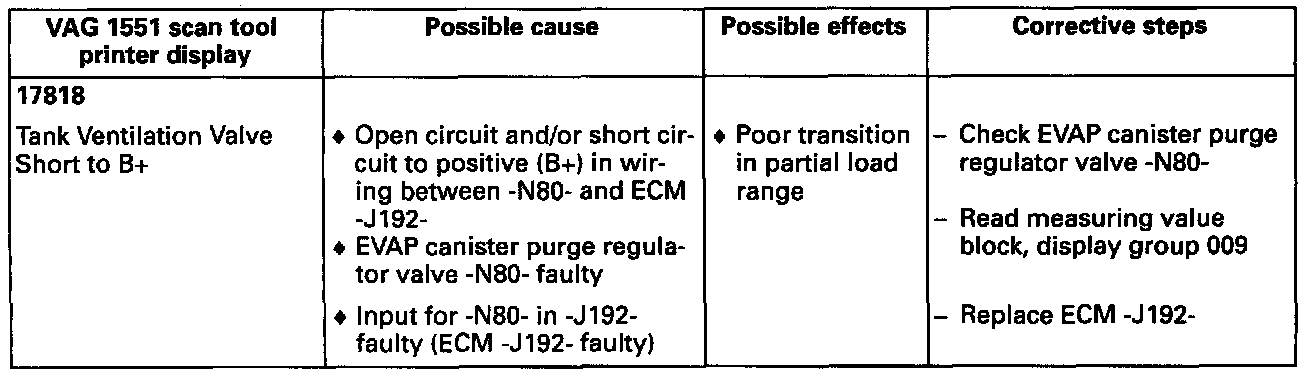 DTC "17817" is stored as soon after engine start as the ECM output for the EVAP canister purge regulator valve is "high" for longer than one second at an engine speed greater than 1250 RPM, an engine load greater than 40%, and an EVAP canister purge regulator valve duty cycle less then 40%.