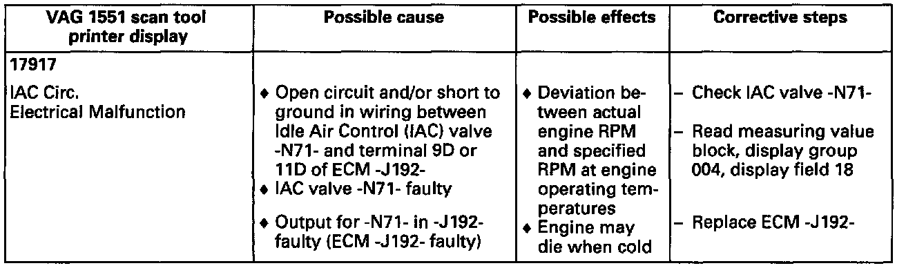 When a malfunction is recognized in the electrical circuit, both final output stages ("+" and "-" output) are switched OFF. IAC valve -N71- has no current and the limp home map is initiated.