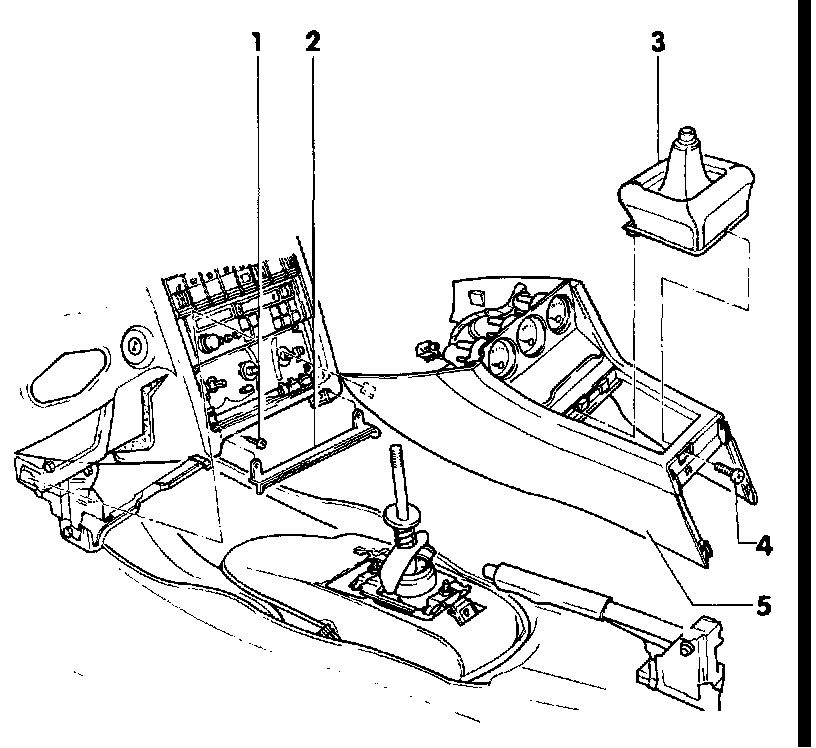 Front center console, removing and installing1. Screws 2 Nm (18 in lb)