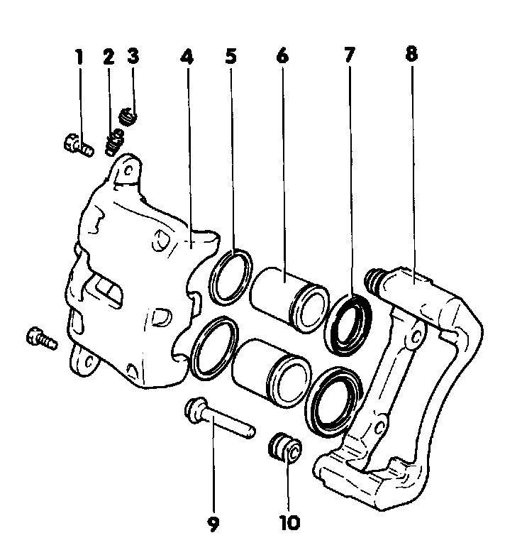 Note: Lightly coat the brake caliper bores, pistons and piston seals with brake cylinder paste B 000 700.